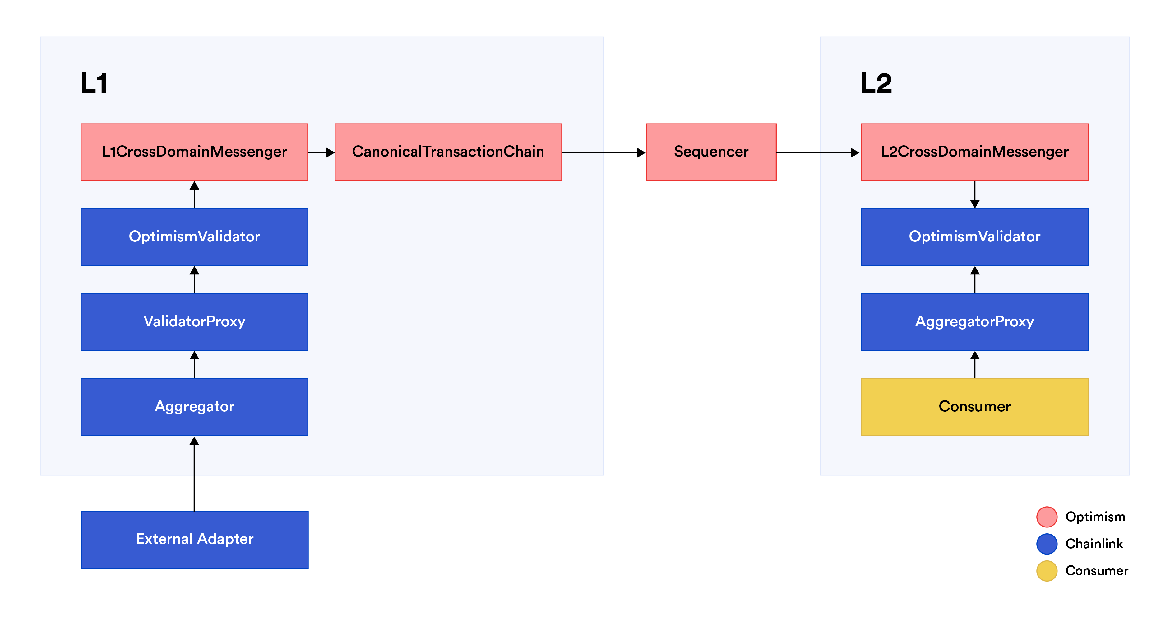 2. The L2CrossDomainMessenger contract relays the message to the OptimismSequencerUptimeFeed contract.