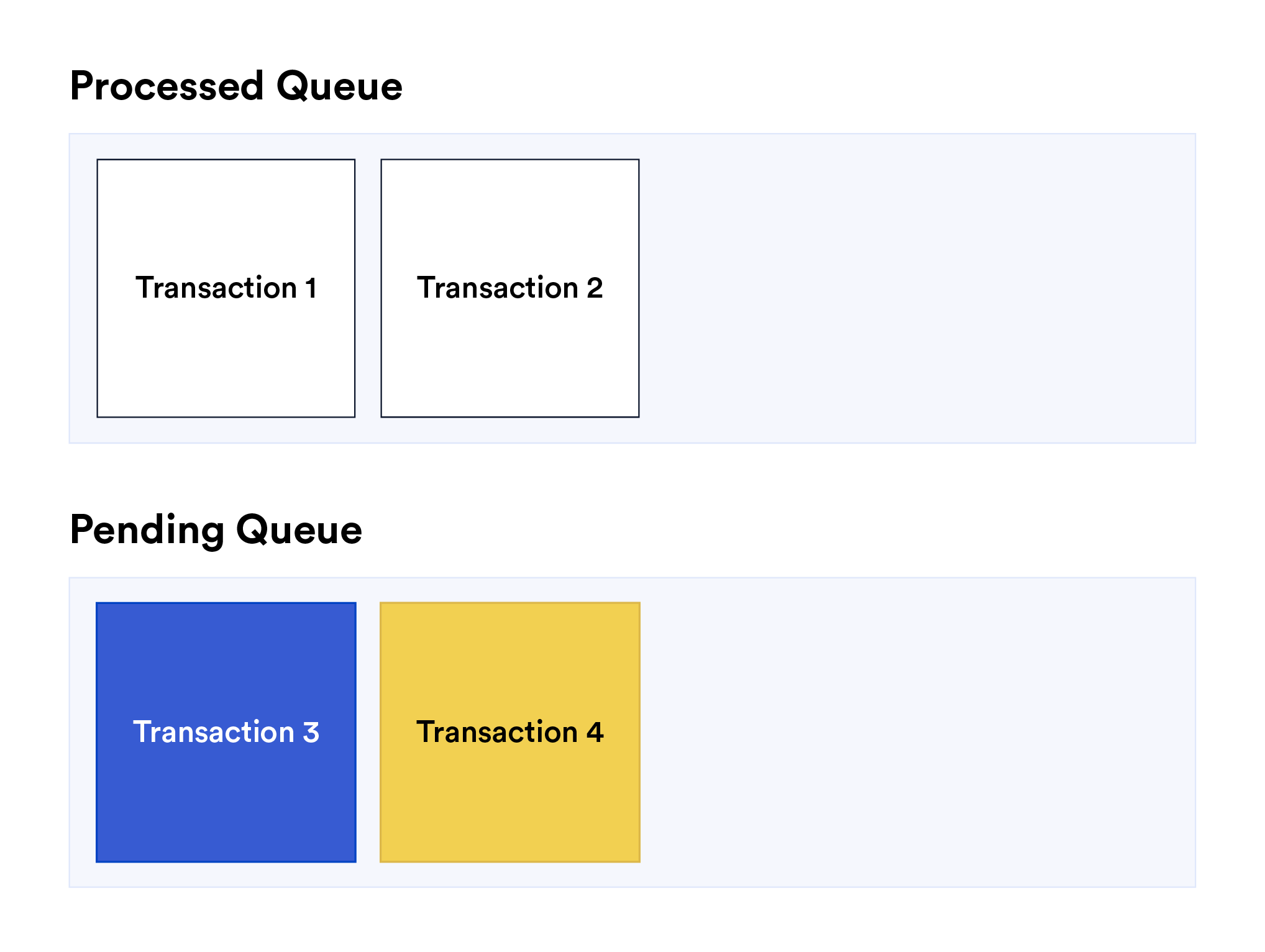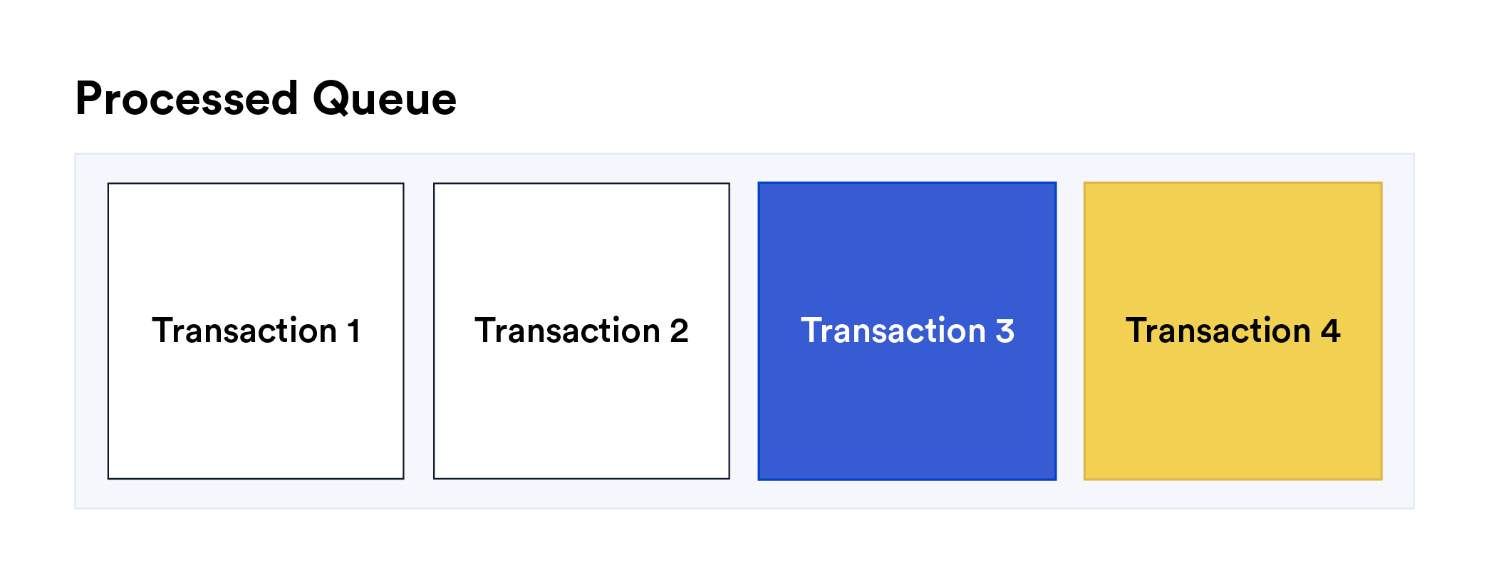 1. Transactions are processed in the order they arrived so Transaction 3 is processed before Transaction 4.